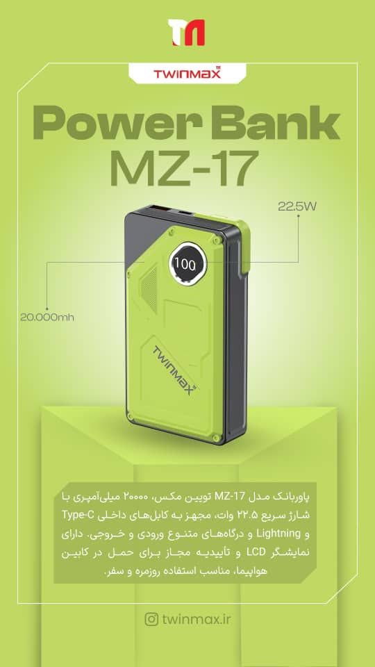 پاوربانک و شارژر دیواری بی‌سیم توئین مکس TwinMax MZ-18 ظرفیت 20000mAh