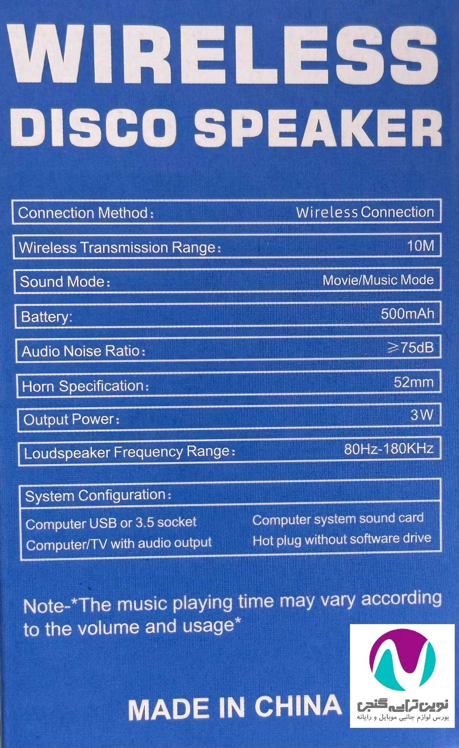 توجه: زمان پخش موسیقی ممکن است بسته به میزان صدا و نوع استفاده متفاوت باشد.