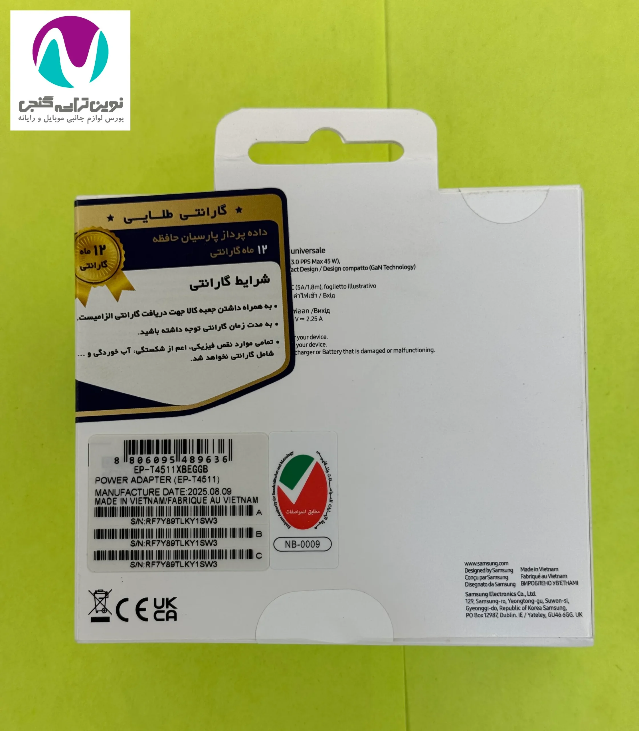 این محصول اورجینال سامسونگ و ساخت ویتنام است. شماره مدل: EP-T4511XBEGGB