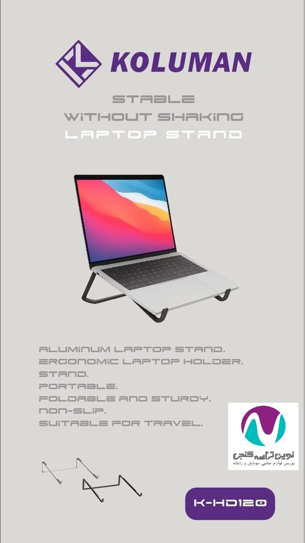 هولدر لپتاپ کلومن مدل KOLUMAN K-HD120 یک پایهی کاربردی و زیباست که برای افزایش راحتی کاربر در هنگام کار با لپتاپ طراحی شده است. این هولدر با طراحی ارگونومیک خود به بهبود زاویهی دید، جلوگیری از خستگی گردن و افزایش تهویهی هوا زیر لپتاپ کمک میکند.