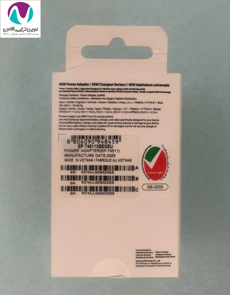 این محصول اورجینال سامسونگ و ساخت ویتنام است. شماره مدل: EP-T4511XBEGAEU