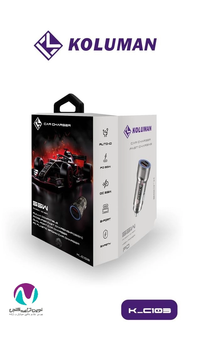 شارژر فندکی 30 وات کولومن K-C103 برای رانندگان، مسافران و کاربران حرفهای موبایل که